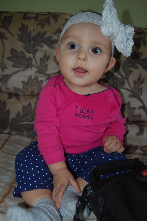 А между тем Тася растет! Девять месяцев! Мы оказались совсем то и небольшие и не крупные! Рост 78 см, вес 8 700 кг! Везде стоим, ходим за ручки! Много улыбаемся и кокетничаем!