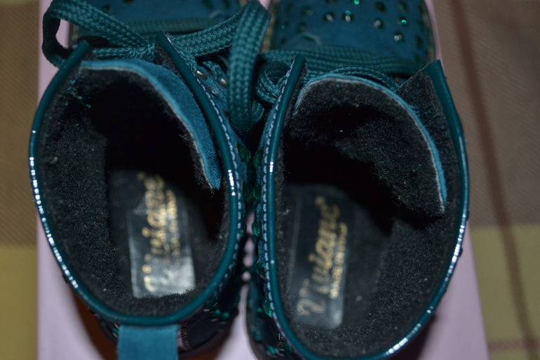 Изумрудные ботинки Viviane, все в стразах. Стразы все на месте Очень красивые. На ножке смотрятся просто шикарно. Состояние хорошее. Утепленные. Носили совсем мало. Стелька размер 16,5, подошва 18,5