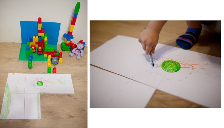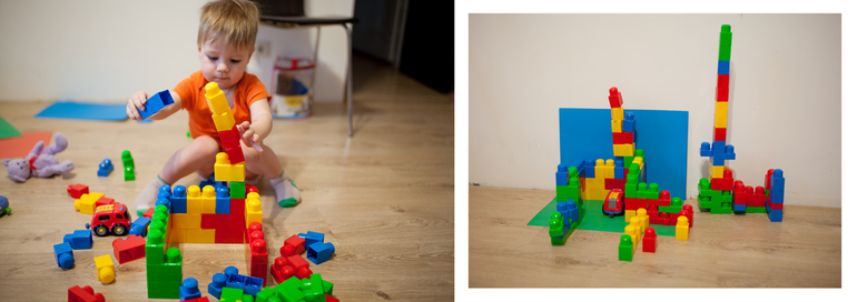 Суть задания, провести ревизию машинного парка, оставить только целые машинки, устроить им банный день, ну и построить гараж. Скажу сразу, интерес к машинкам у нас проявился только недавно, поэтому тема гаража пока для нас не актуальна, но все что связано с водой, вызывает восторг, поэтому посреди комнаты у нас теперь озеро, где мы разводим ручные машинки. Но гараж мы попытались построить вместе, но машинки сразу же оттуда выкорчевывались и отправлялись в путь.