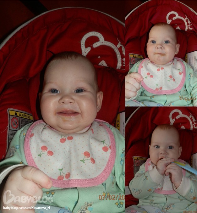В 16.50 кушаем пюре (груша), это мы любим и всегда широко рот открываем)