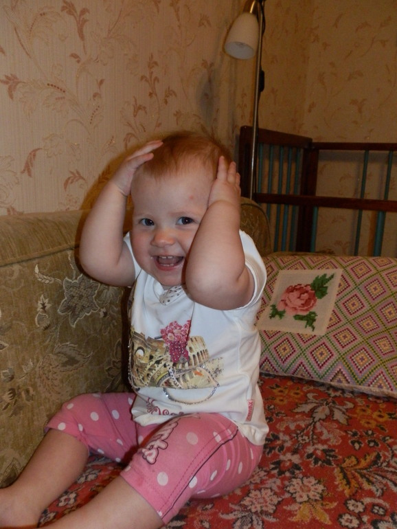 Вот и дождались, чтоб Катюша нам улыбнулась. Правда кроме меня никто этого не видел) Улыбается раз в день, больше не дождешься, серьезная дама))
