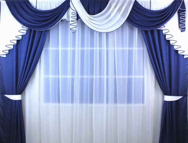 Шторы шьются из плотной портьерной ткани, ширина двух штор 5 метров. Высота 2,7 метров.