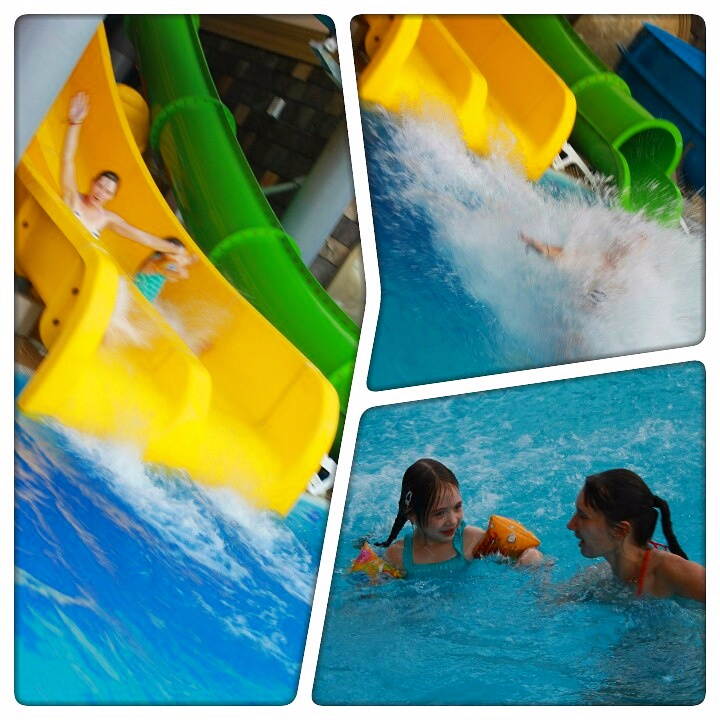 Это были в аквапарке, Олесе даже разрешили кататься с взрослых горок))