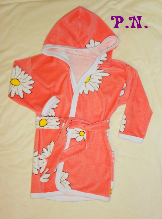 Случайно увидела сегодня в нашем магазине розовый велюр(!!!!) и трикотажную махру,конечно же схватила не глядя,ведь такие ткани "выбрасывает"наш магазин раз в 10 лет))))Сегодня же сшила халатик дочке и ей же велюровый костюм со стразами.Только они нехорошо приклеились.....