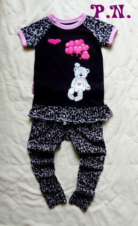 Я уже показывала эти легинцы,но сегодня наконец то к ним сшилась футболка из кулирки: Гламурненько?завтра нарядимся в садик первый день после болезни)Ура!!