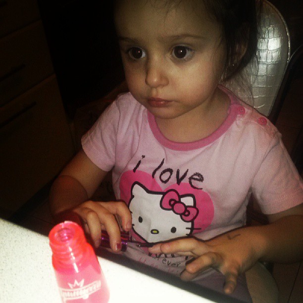 Человечек САМ красит себе ноготочки СВОИМ собственным детским лаком и пока не подозревает,что лак горький!надеюсь отучить ее сосать пальчики,хе хе хе хе))))