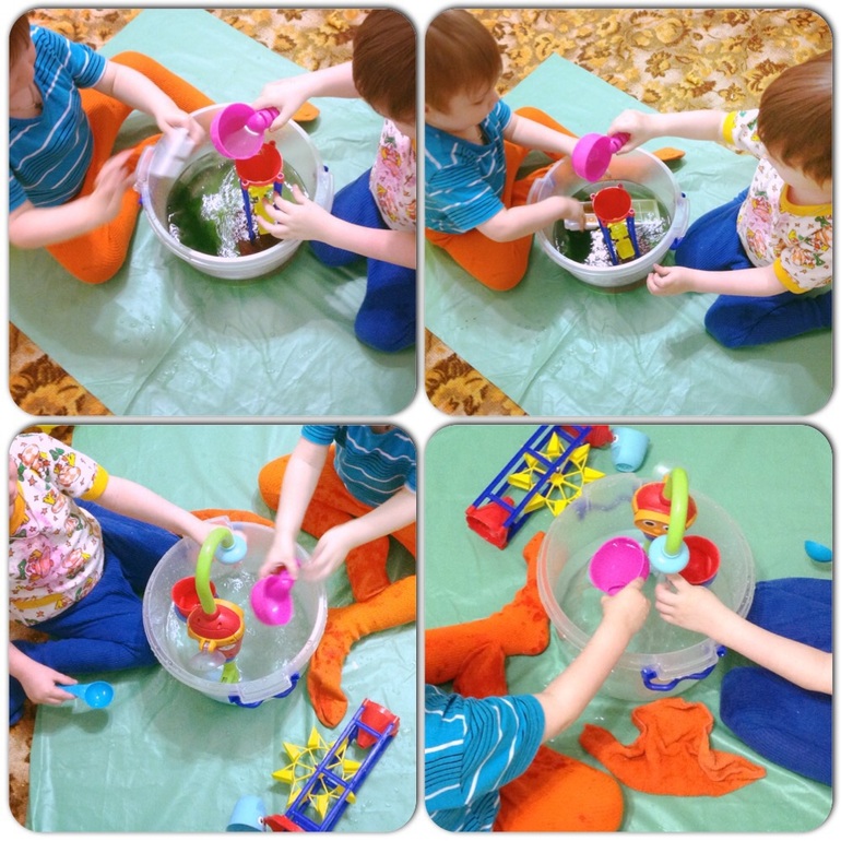 они конечно же притащили свою любимую мельницу и продолжили игры с ней, но чтобы немного разнообразить их забавы, я им предложила поиграть с "Волшебным краном"