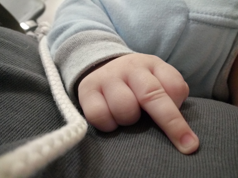 Были вчера в поликлинике, сыночек уснул у меня на груди с неприличным жестом 😂