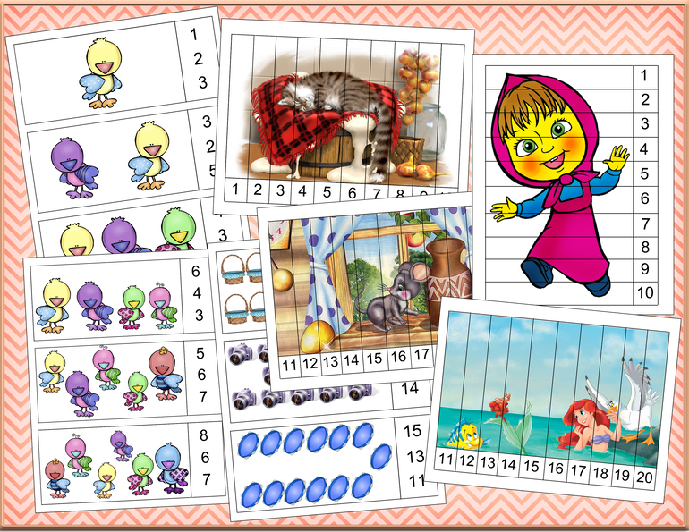 Игры с прищепками и математические пазлы)