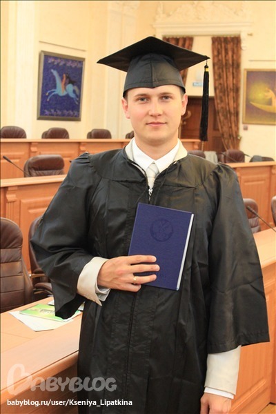 Наконец-то настал тот декнь, когда мой муж получил диплом магистра. Вручение было в 6 июля в 15.00. А вот и мой умница: