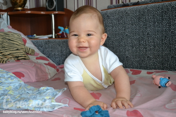 Итак, нам сегодня целых 8 месяцев! За прошедший месяц Владюшенька много научился делать, стал намного взрослее ))) Вес-рост на сегодняшний день не знаем, но в 7,5 месяцев мы весили 9400 гр (+200 гр за полмесяца) и 71 см (+ 1 см за полмесяца). Мы поставили третью прививку - АКДС (Инфанрикс) и полиомиелит. Преренес замечательно, как будто никаких прививок и не было )