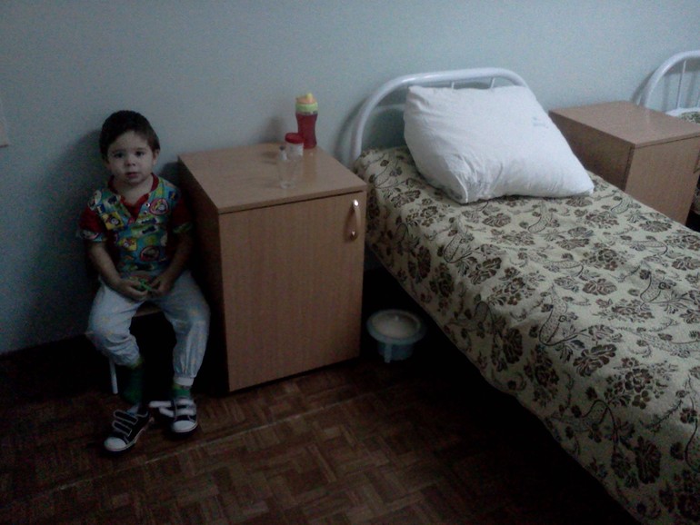 Отделение конечно убогое, состояние больницы жуткое, окно завешано одеялом, чтобы не дуло сильно. Когда я спросила про детский унитазик в отделении, на меня медсестра посмотрела как на дуру. Нам выдали горшок (как кастрюлька), ну и на том спасибо. Легли спать. Влад в маленькой кроватке отказался спать, лег со мной, лежал моргал полчаса, потом уснул наконец-то. А я всю оставшуюся ночь так и не смогла уснуть.