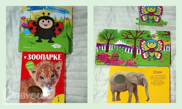 нижняя тоже с тактильными вставками,дорогая,зараза,но не такая интересная,как на первом фото,маленькая по размеру ,пока не увлекла Григория,но фотографии реальных животных,не мультяшных,думаю,что при посещении зоопарка в ближайшее время обязаптельно возьмём её с собой