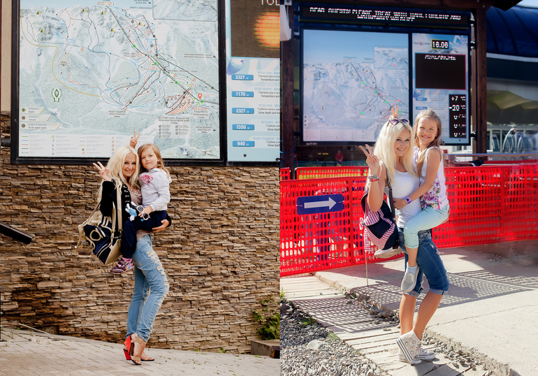 Ну, и одну фотку покажу. Это мы на Красной Поляне 3 года назад и сейчас))) Кто-то сильно подрос))) Мне предложили сделать такую же фотку еще через 3 года, вот только не знаю подниму ли я ее в 10 лет))) Фото немного с разного ракурса, т.к. в этом году ближе подойти было нельзя, все огорожено, народу тьма (на втором фото я удаляла чужие ноги-головы-попы)