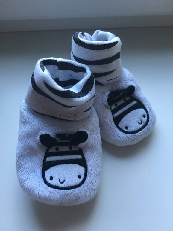 В этих милых пинетках крошечным ножкам будет тепло и уютно в прохладные дни. Забавный дизайн привлечёт внимание малыша, ведь самым первым цветом, который они различают, является чёрный. Ребёнок с интересом будет дотрагиваться до своих ножек. Пинетки имеют эластичную резинку для идеальной посадки обуви по ноге и противоскользящую подошву. Отличный выбор на каждый день.400₽