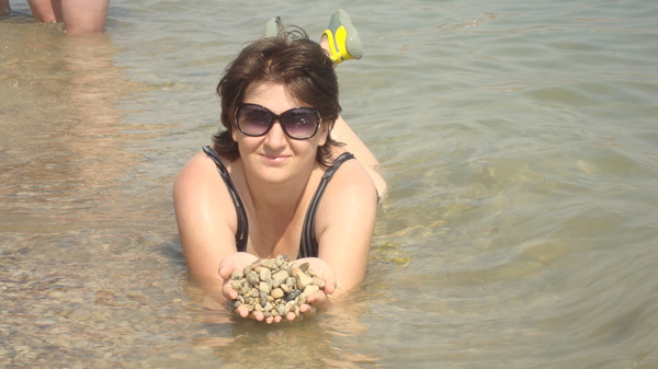 А для счастья нужны были тапки. Ходить босиком по гальке, вещь полезная, но малоприятная. Я тут же обзавелась спец. обувью для плавания себе и Соне. Макс отказался.