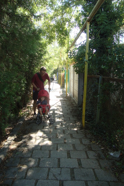 К морю идти легко, с горки) А вот домой тяжко... в гору, да ещё с рюкзаками, с коляской и с пакетом продуктов. Но у всего есть свои плюсы, и у этого тоже) Мы ни разу не воспользовались автобусом. Всегда ходили пешком, домой я вернулась похудевшей на 4 кг))))) Да и боли в теле от остеохондроза куда-то делись)))