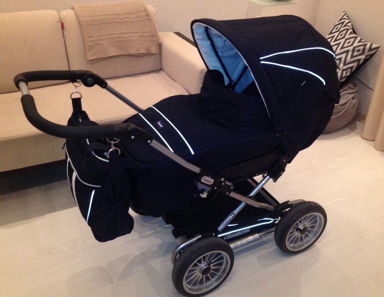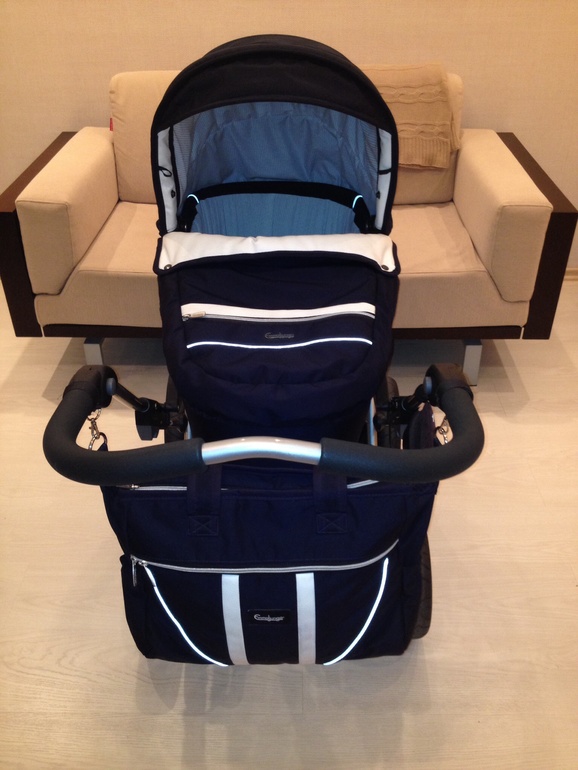 Коляска премиум сегмента. Цвет темно-синий с отделкой белой эко-кожей. Состояние идеальное! Весь текстиль как новый. Коляска была не единственная.