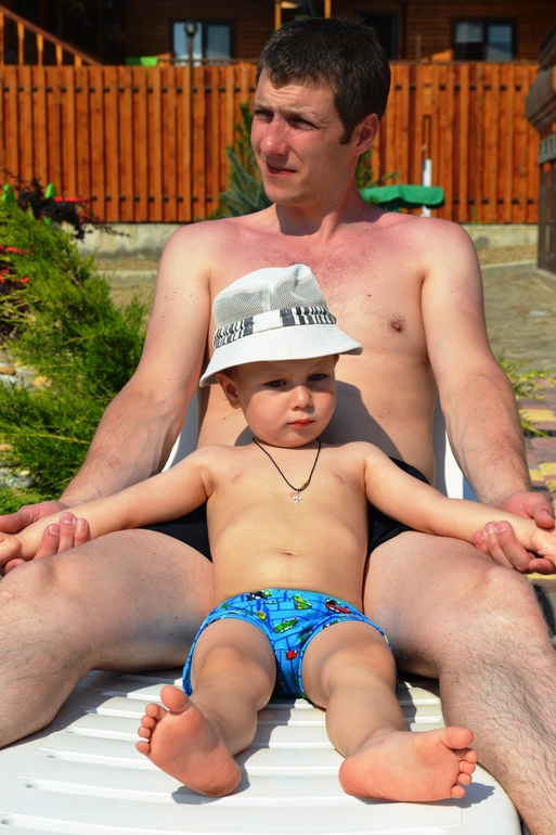 Потом-таки вошел во вкус конечно же, это пооизошло ближе к концу отпуска и уже самостоятельно пытался нырять как и в бассейн при нашем гостевом номере, так и в само море. Правда, тут стоит отметить, что лицо у него при любых погружениях в жидкость было как у инквизитора, и единственное, что его веселило, так это повизгивания мамы в момент обрызгивания ее водицей) Мама, правда, этого не очень одобряла и иногда был риск перерастания визга в материнский это не от слово мать, а от мат мат.