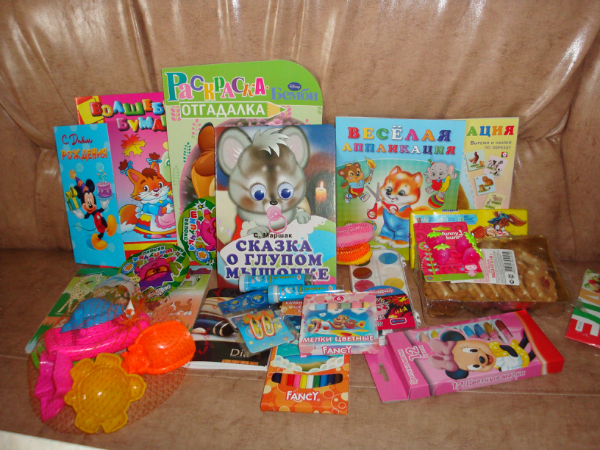 Внутри нас ждало много интересностей и полезностей! Раскраска, книжки-аппликации, Книжка со сказкой, развивающие деревянные пазлы с животными, игрушки для песочницы, заколочки и резиночки для волос, блокнот, карандаши, пара пачек цветных мелков, краски, мармеладки, шоколад, вкуснейшее печенье! Открыточка с чудным стихотворением от феечки) Сохраним на память обязательно.)) Пазлы уже собирает, получается. Очень понравились Варюшке. Пасочки уже в песочнице, тоже играет с ними. Мелками рисовали во дворе - ребенок в восторге)))) Сладости быстро слопали, т.к. и Вареник любит сладенькое, и я сейчас питаюсь одними конфетами (Как и в прошлую Б) Аппликации и раскраски, карандаши и краски, заколочки - все это лежит в запасниках и ждет своего часа)))))