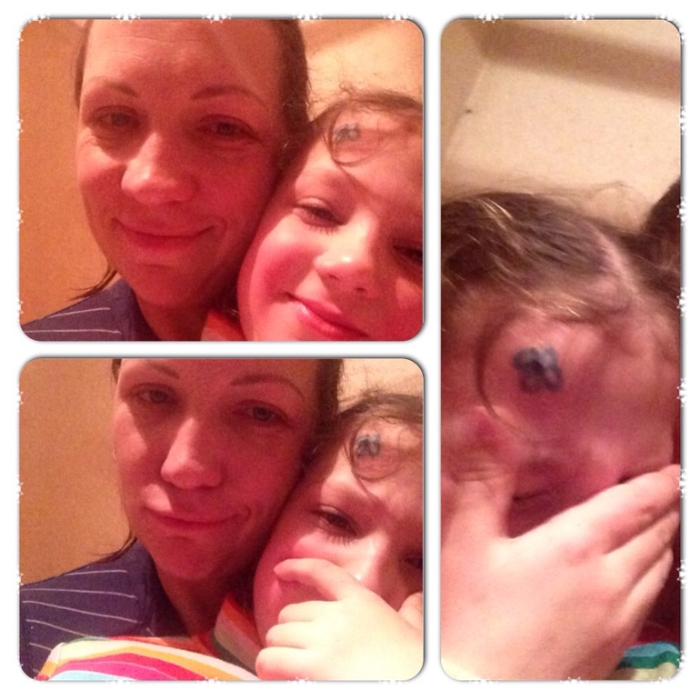 Ника ударила себя ручкой от совка. Там совок с большой ручкой железной. Получилась как на грабли наступила. Шишка теперь и ранка небольшая. Я ей зеленкой цветочек нарисовала.
