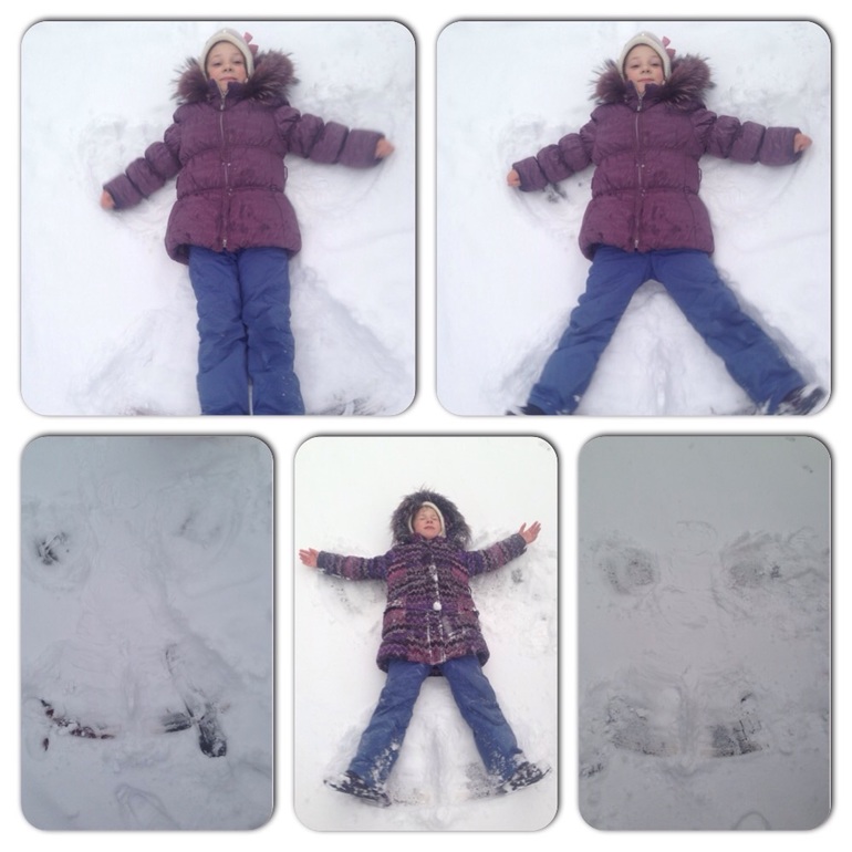 Мы с ними сегодня и в снежки, и на санках, и горку во дворе сделаи, дед им снеговика слепил. Ника всю улицу снежными ангелами украсила. Везде полежала и помахала руками и ногами. Спасибо добрым людям, что не знаем недостатка в одежде. Гуляли 2 раза и переодевались 2 раза. У самой куртка насквозь Мокрая.
