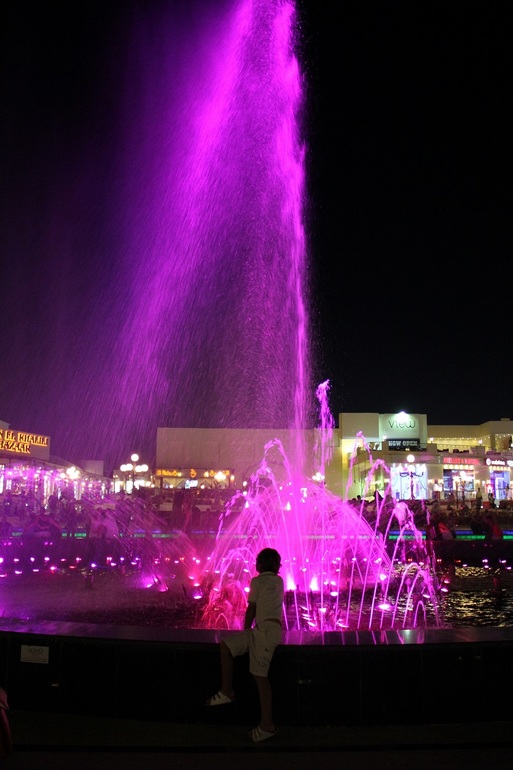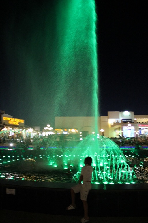 на слоне, весь мокрый- промок у поющего фонтана-довольный)) так как хоть и вечер но очень душно