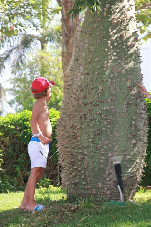 еще вот такое необычное дерево мы обнаружили по дороге на пляж пузатое похоже на баобаб и все покрыто колючками