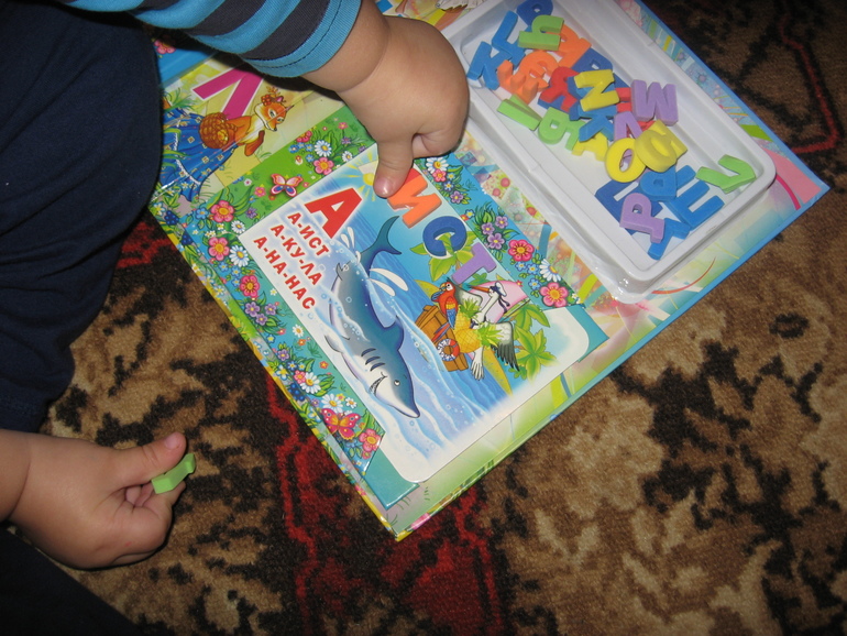 -упомянула про буквы, из которых слова составляют, предложила вот такую игру: не оценил сын( рано наверно ему пока)