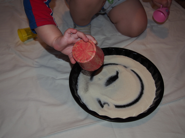 Мы с сыном долго возились: проводили, пересыпали, насыпали, рисовали.