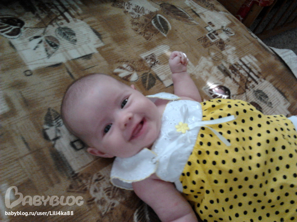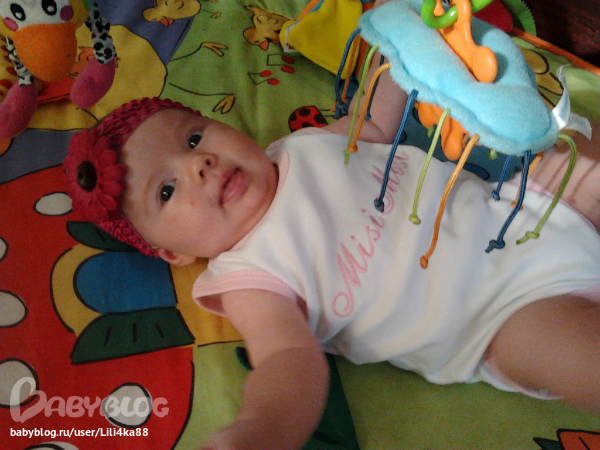 все хорошо у нас, лыбимся маме и всем подряд(сегодня врачу так улыбалась), играемся, гулим, на ручки просимся!!!!