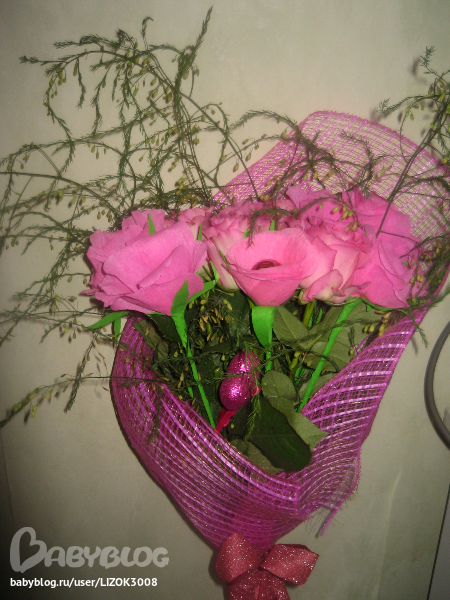 2. Букет из конфет и из живых роз. ( всего 19 штук).