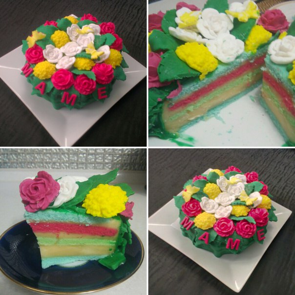 Тортик " Птичье молоко" с разноцветными коржами.