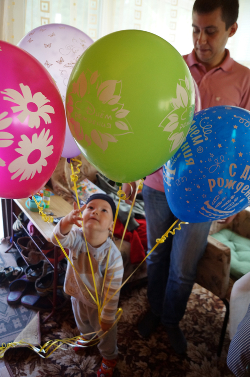 С самого утра поздравляют деда и дядя (мои папа и младший брат). Дед убегает слишком быстро, заснять не успеваем)))