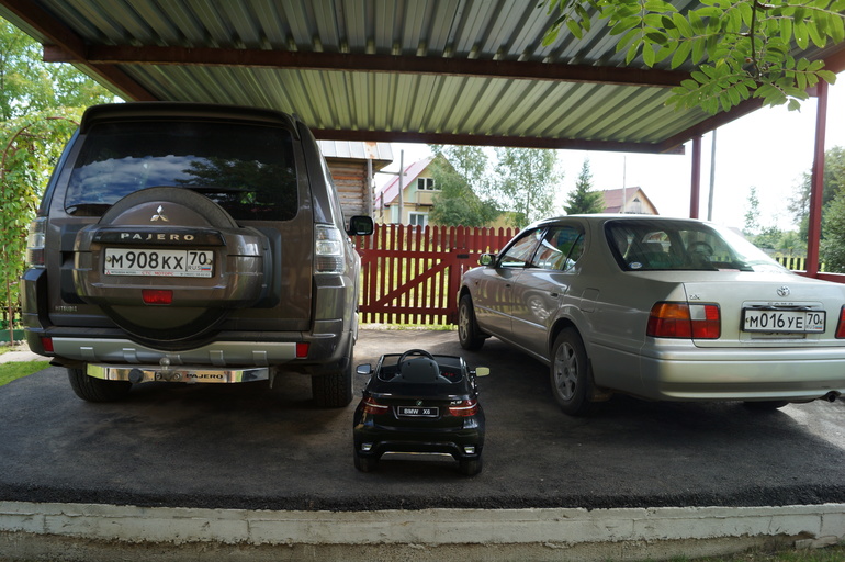 И разумеется наслаждаемся главным подарком (от бабушки с дедушкой) - БМВ Х6! Отдали ее ребенку раньше, но на даче он впервые накатался от души!