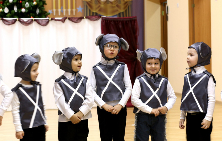 Утренник был аж 17 декабря. Была постановка Щелкунчик " Пока часы 12 бьют". Костюм мышонка нам дали, купила только бадлон. Выучили одну строчку, и эту строчку позабыл застеснялся. В целом всё очень понравилось. Детки счастливы. Фотографий много...