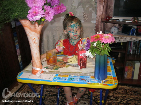 ВО-ПЕРВЫХ,за несколько дней до дня рождения,а именно 13 сентября, в детском саду Настенку толкнули и она упала и расшибла себе лоб