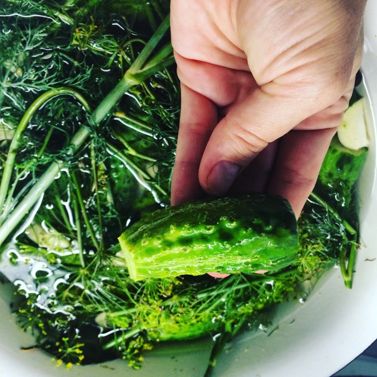 солим солим малосОлим 😂!! Берём средненькие гугурчики (те самые прыщавые 😂) моем, сушим, попы обрезаем, в волшебный тазик укладываем, пару-тройку зубчиков чеснока, пару листиков лаврухи, штучек пять горошка перца, пару звёздочек гвоздики, пучок укропных зонтиков и заливаем литром кипятка с ложкой столовой сахара и двумя соли! Под гнёт на весь день в комнате, а потом без гнета, но ещё в рассоле в холодильник! И уже на следующий день ими хрустящими можно закусывать! ☺️😉😍
