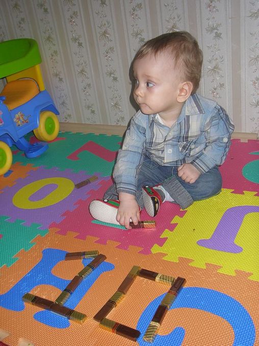 . Очень любит кота, хватает за хвост и за лапы, пытается догнать ползком. Были у невролога, сказали, что всё ок, но надо учить его садиться и опускаться, когда стоит, сам не умеет, надо игрушкой дразнить и учить, этим и занимаемся теперь. Сегодня сдал кровь, узнаем нам гемоглабин, эх... надеюсь в норме! Ну и фото