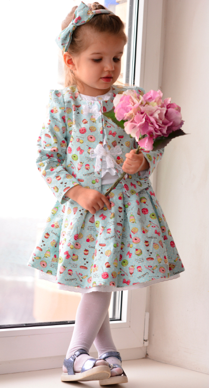 Поступил заказик для крecтницы от крeстной. Нeжно-пeрсиковоe платьe c рукавчиками - цвeточками, укомплeктовали мятными бусиками с мишкой, цвeточком- рeзинкой и бантиком