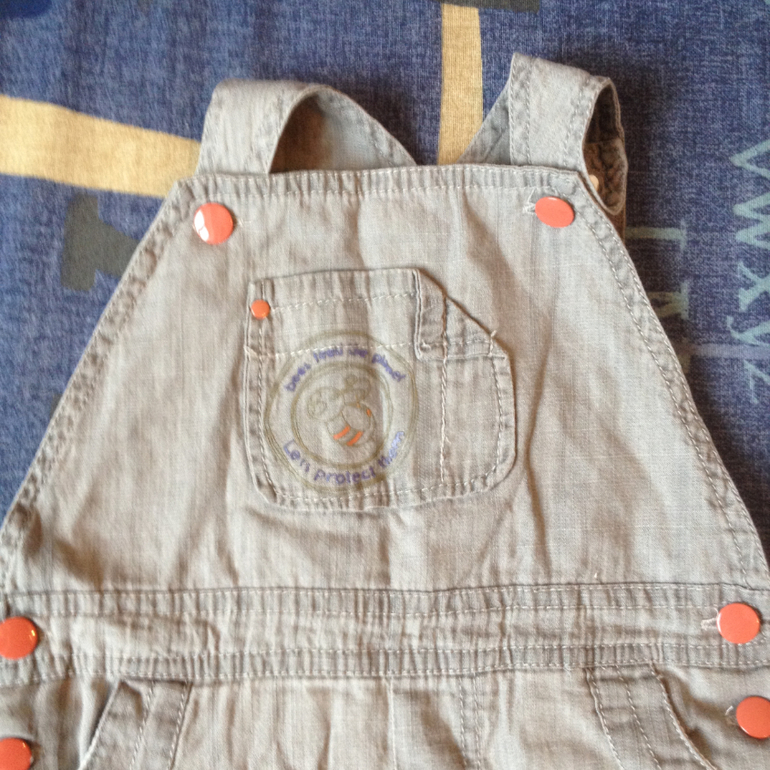 На комбинезоне есть какое-то пятнышко на штанине еще из магазина, предполагаю, что при первой же стирке оно исчезнет.