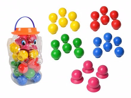 Развивает игровое и художественное творчество, фантазию, тренирует сенсорно-моторную координацию.Набор состоит из 28 разноцветных присосок.
