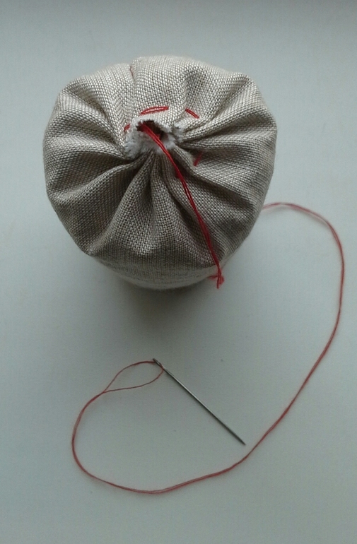 берем Лен/мешковину , складываем пополам, соединяя длинные стороны вместе и прошиваем красными нитками, так же прошиваем донышко. Верхнюю часть прошиваем так как на фото, собираем на нитку, оставляя длинные концы нити , для того чтобы после заполнения крупой стянуть.