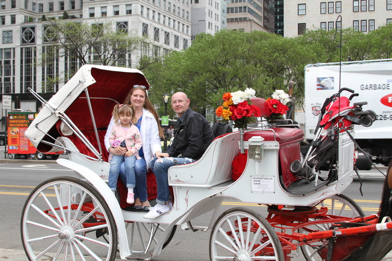 ПОЕЗДКИ И ПУТЕШЕСТВИЯНаконец то у нас потеплело и мы с огромным удовольствием выбрались прогуляться в центральный парк на Манхеттене. Я очень люблю это место. Этот парк просто какой то островок природы и красоты. А сейчас еще и весна, везде цветут тюльпаны, нарциссы, фиалки, магнолия, сакура и в общем красотень....С утра правда как то немного все не складывалось, то как то вяло собирались дома из угла в угол, потом на автобус опоздали, поехали на другой и пробку попали, потом паркинг не могли найти, ну слава Богу сели на экспресс бас (автобус) , но и на нем попали в пробку..(трафик) Но в 12 часов мы уже все таки были в парке... И сразу же Сашулька увидела лошадей и кареты и конечно же мы не могли не покататься...: