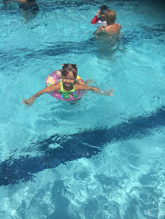 Сашулька научилась, прыгать, нырять, ну в общем из воды мы ее не могли вообще вытащить, максимум на 3-5 минут и уже она снова в воде: