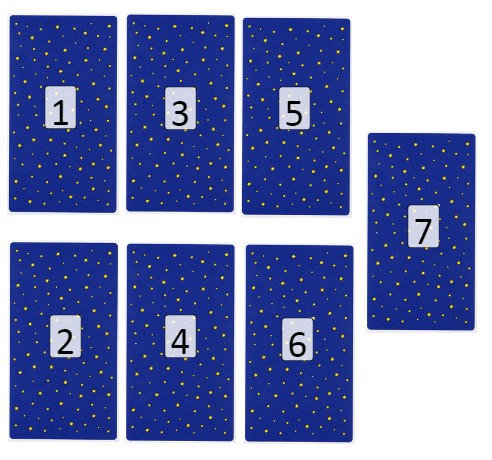 Это классический расклад. Применяется для выяснения взаимоотношений между спрашивающим и каким-то другим человеком - например, партнером в любви или в бизнесе. Лучше использовать только Старшие Арканы (хотя и не обязательно).