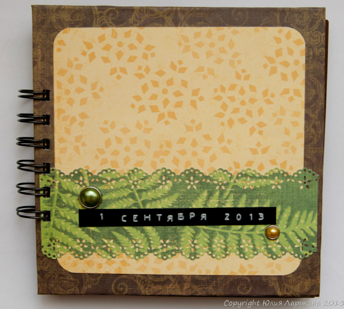 В последнее время очень нравится делать альбомы такого формата, и к тому же самые основные фотографии можно всегда показать родным. Украшений не использовала, только ручной ленточный принтер и красивую (мою первую и самую любимую бумагу компании K&C Набор назывался Дикий шафран. Для основы страничек использовала дизайнерский картон шоколадного цвета плотностью 270гр (без плотных основ потом будет не очень хорошо, а я ведь делаю альбом на года, полэтому все должно быть хорошего качества). Для обложки использовала переплетный картон, обклеила его односторонней скрапбумагой и украсила чуть-чуть. И вот что вышло: