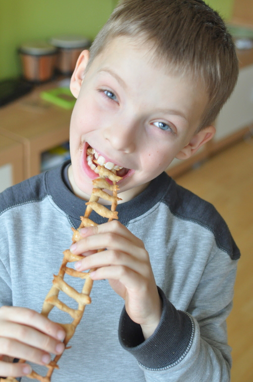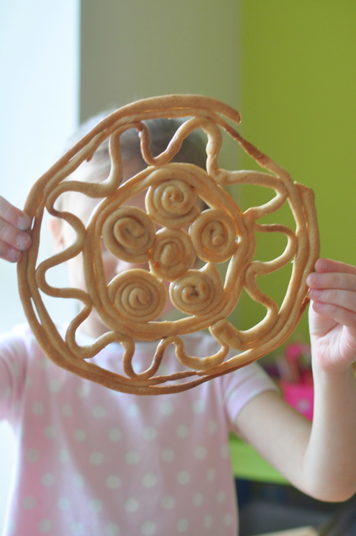 Сам процесс очень завораживает, катать как можно тонкие трубочки, сворачивать разные узоры, опять раскатывать... Мы со старшими детьми не на шутку увлеклись процессом. Теста даже всем желающим не хватило.