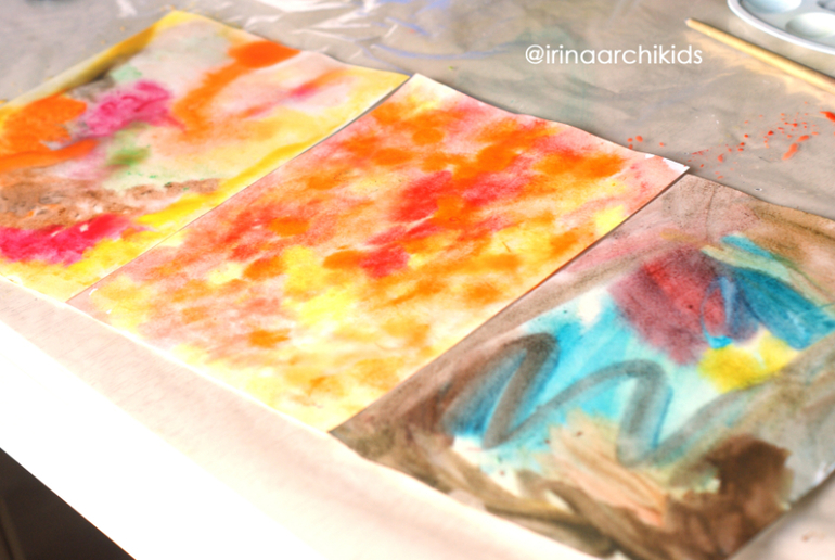 Я сегодня в очередной раз убедилась в том, как много значит процесс в рисовании маленьких детей) Егор после всех штамповок начал дорисовывать кистью. В результате получилась что-то похожее на болото)) Но он был настолько увлечен, что останавливать его не было никакого желания) Ну а результат.. он есть, потому что в результате всех творческих процессов остались навыки ребенка)