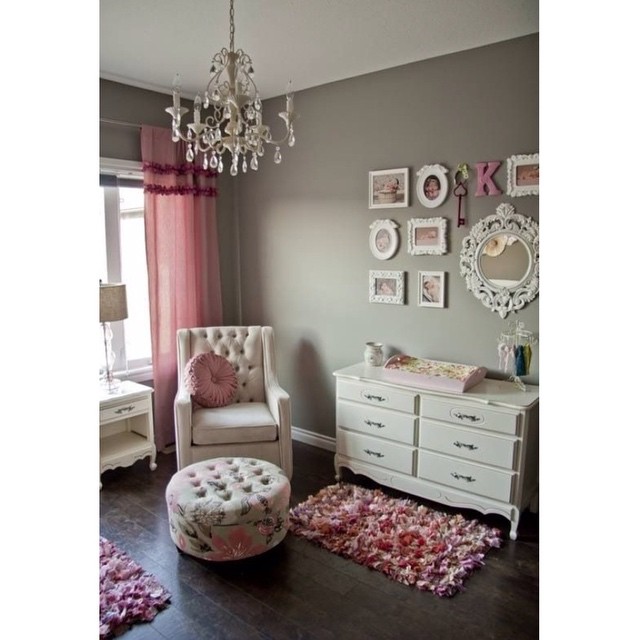 Белый, розовый и серый. Классическое сочетание цветов в классическом интерьере. #серый #розовый #белый #комод #коврик #кресло #рамки #люстра #гостиная #декор #дизайн #ремонт #москва #россия